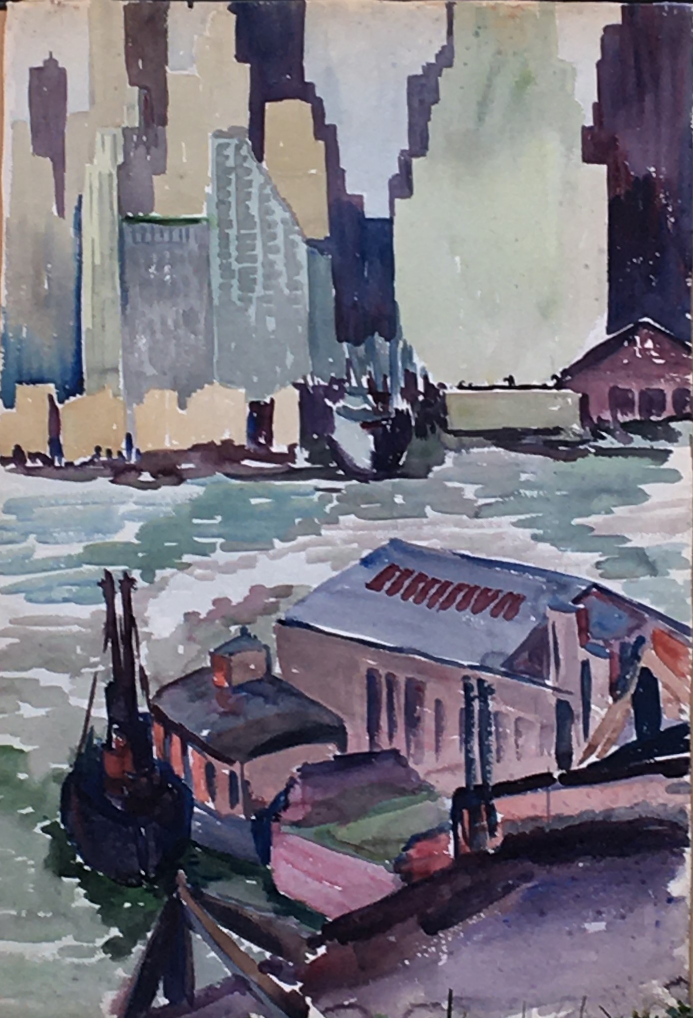 Even while living in New York City Carrie was looking for and painting nature. As an example, while living in Brooklyn, she painted the East River with Manhattan in the background.