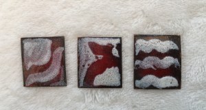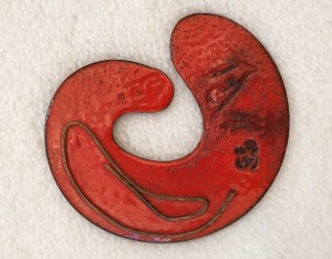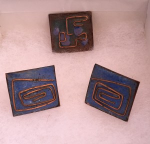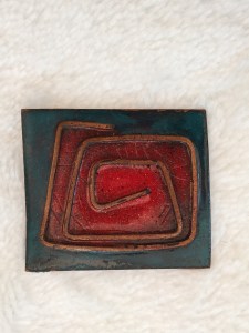 At this time, Inez began exploring with copper and silver jewelry making, and she incorporated concepts of abstract expressionism into her designs. You’ll notice she also retained the idea from her earlier work in greeting cardmaking, with embedding metal wires in some of the designs.